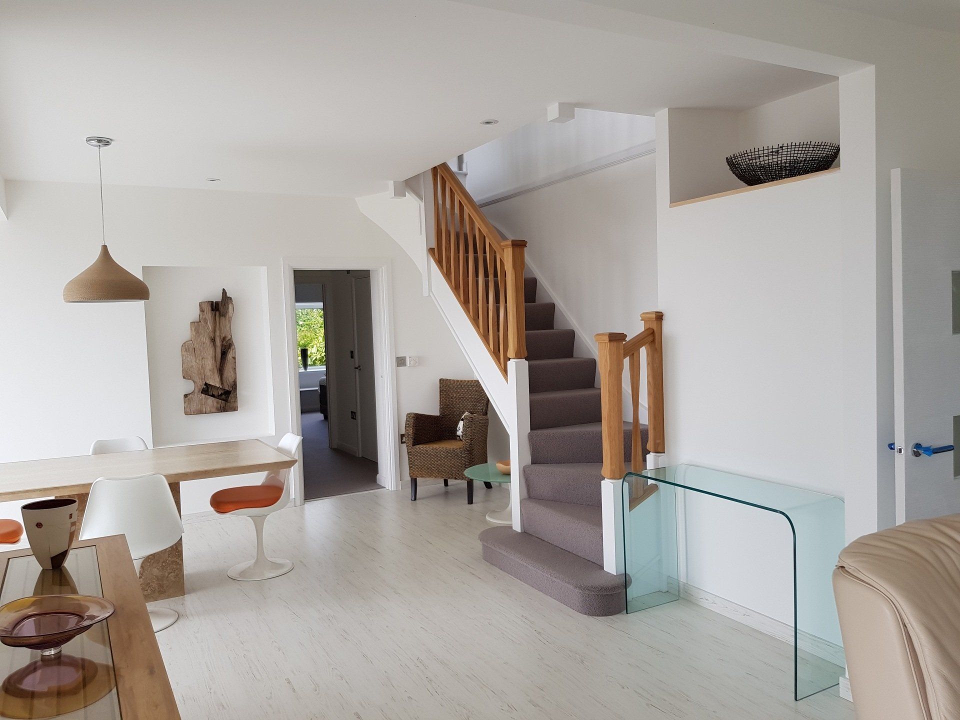 An exciting project in a stunning location, Higher Ley has been transformed with the addition of a full width raised outdoor area and complete refurbishment to a beautiful standard throughout the interior. The refurbishment includes kitchen, bathrooms, living spaces and utility with a focus on elegance.